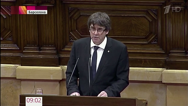 *Карлес Пучдемон выступает с трибуны парламента.*Фото: скриншот с видео 1tv.ru