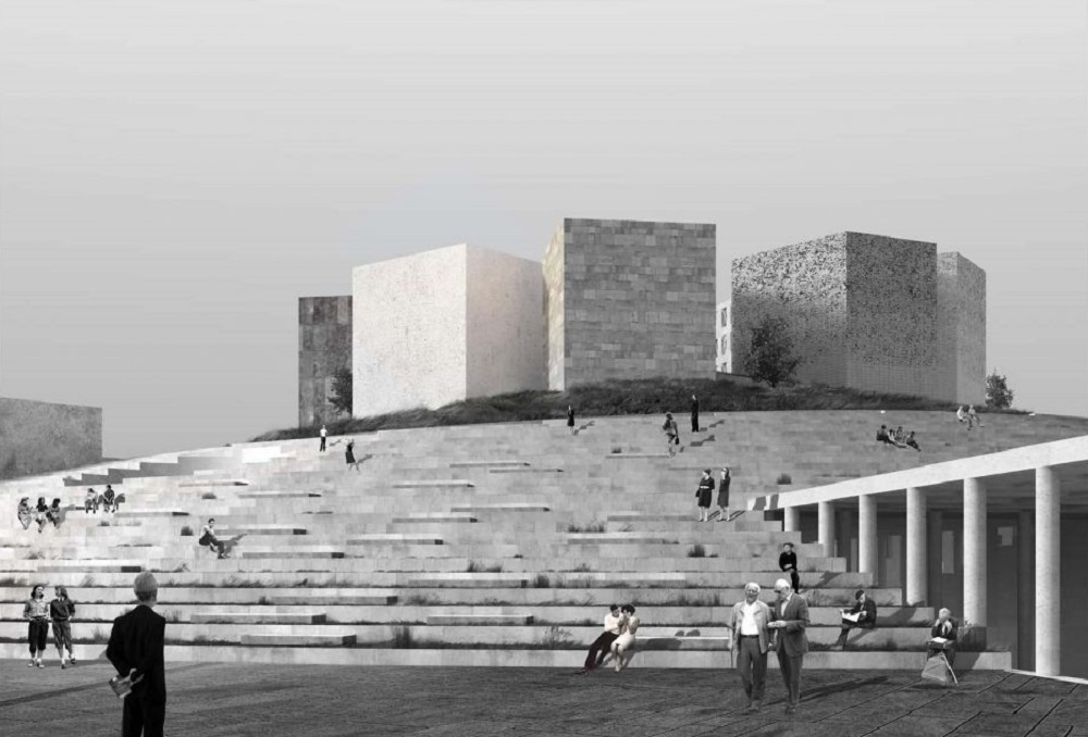 Проект называется «Выстоявший город». У музейного комплекса будет вид пологой возвышенности диаметром 164 метра и высотой 18 метров. Нижний пояс этого холма — ступенчатый.