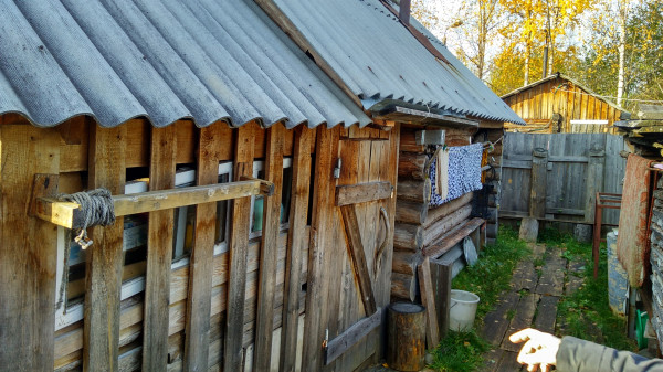 И в этой квартире проживают два старика. Когда температура заходит за 20 градусов мороза и дует ветер, в квартире не возможно даже находится в одежде. Лютый холод. Они с женой идут в построенную рядом своими силами баню. Топят ее, работают и спят в ней, что бы пережить холода.