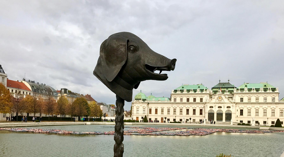 С Кариной в 21er haus, встречаемся с Анной Ермолаевой, которая 30 лет назад была маленькой антисоветской девочкой, а теперь стала знаменитой австрийской художницей и выставляется рядом с Ай Вэйвэем (у него миллион носиков, оторванных от чайников, символизирующих горечь изгнания, у нее — две пирамидки «обе белые»), и мы говорим о том, как она бежала через Польшу в Вену, жила в беженском лагере, а потом стала звездой и ее работы покупает Бельведер.
