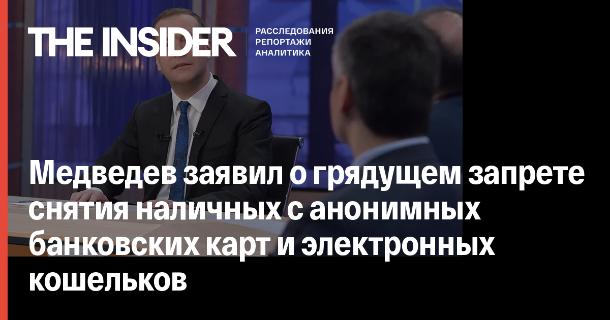 Медведев заявил о грядущем запрете снятия наличных с анонимных банковских карт и электронных кошельков