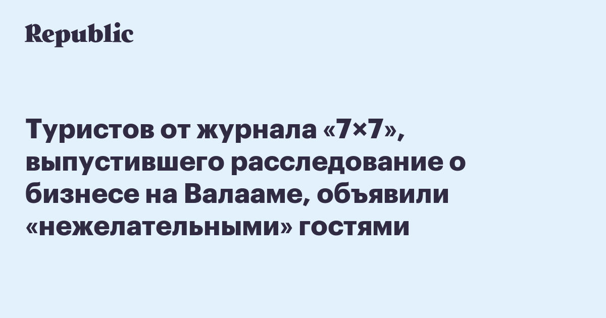 Туристов от журнала «7×7», выпустившего расследование о бизнесе на Валааме, объявили «нежелательными» гостями