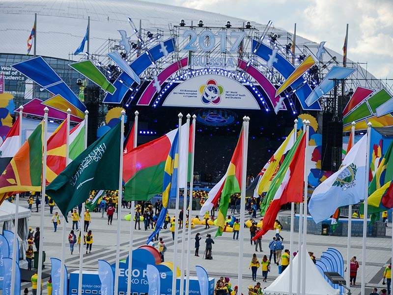 XIX Всемирный фестиваль молодежи и студентов проходит с 14-го по 22 октября в Сочи, где в 2014 году состоялась зимняя Олимпиада. В нем принимают участие около 50 тысяч человек из 180 стран мира. Накануне официальной церемонии открытия фестиваля в Москве состоялся посвященный ему парад, который стал отголоском фестиваля 1957 года.