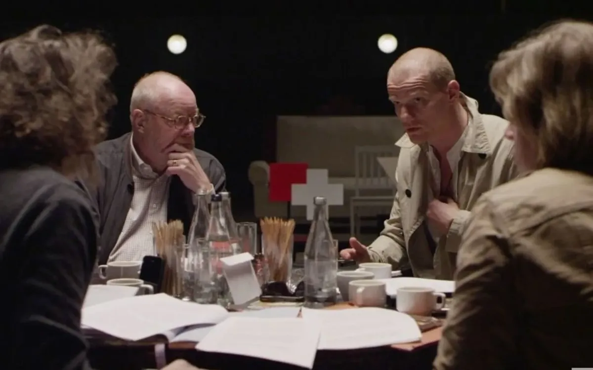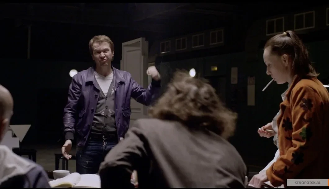 Актеры собираются на читку сценария за репетиционным столом. Колокольников, Хаматова, Миронов, Ефремовы Михаил и Никита, Альберт Альбертс, Адасинский, Мириам Сехон примеряют маски, приспосабливаются к ролям. К примеру, Миронов читает за Троцкого и Агранова. Чекиста Агранова играют три разных актера. И тут же интервью с реальными Лилей Брик, Вероникой Полонской, Патрисией Томпсон… Словно за основу взят метод Чуковского, описанный им в статье «Ахматова и Маяковский»: «Я люблю конструировать личность поэта по еле уловимым чертам его стиля. По его инстинктивным пристрастиям, часто незаметным ему самому, по его бессознательным тяготениям к тем или иным эпитетам, образам, темам».