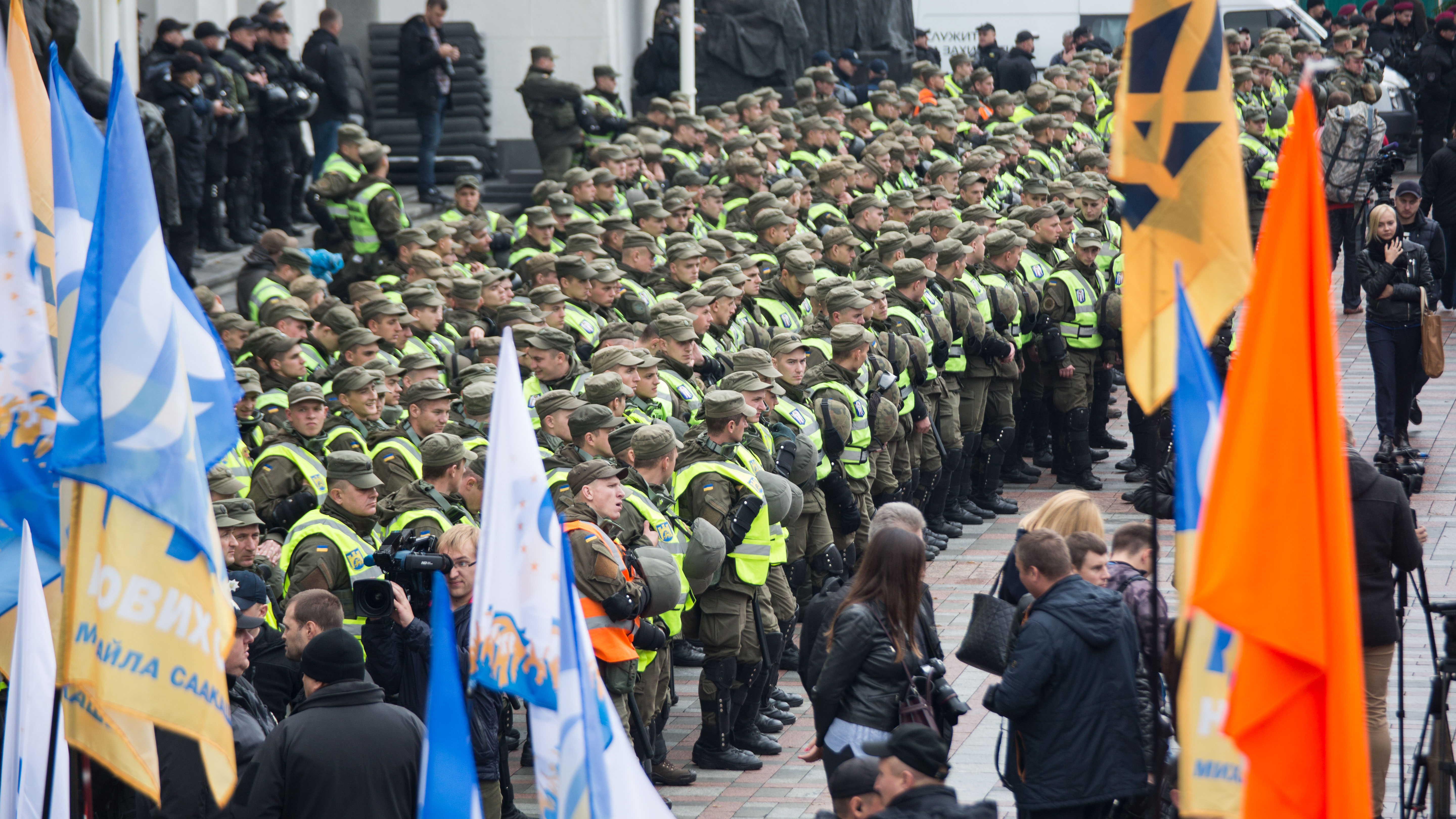 Лидер "Руха новых сил", третий президент Грузии и экс-глава Одесской областной администрации Михаил Саакашвили и его соратники почти из десяти политических сил и движений, в том числе из партий "Самопомощь" львовского мэра Андрея Садового, "Батькивщины" Юлии Тимошенко, "Гражданской позиции" экс-министра обороны Анатолия Гриценко, вывели своих активистов под стены Верховной Рады на акцию "Всеукраинский сбор" – за "большую политическую реформу". Численность демонстрантов утром была не менее пяти тысяч, к вечеру – не более двух тысяч человек. Правительственный квартал Киева и Верховная Рада оцеплены сотрудниками правоохранительных органов. Вокруг здания парламента тройное кольцо полицейских и национальных гвардейцев.