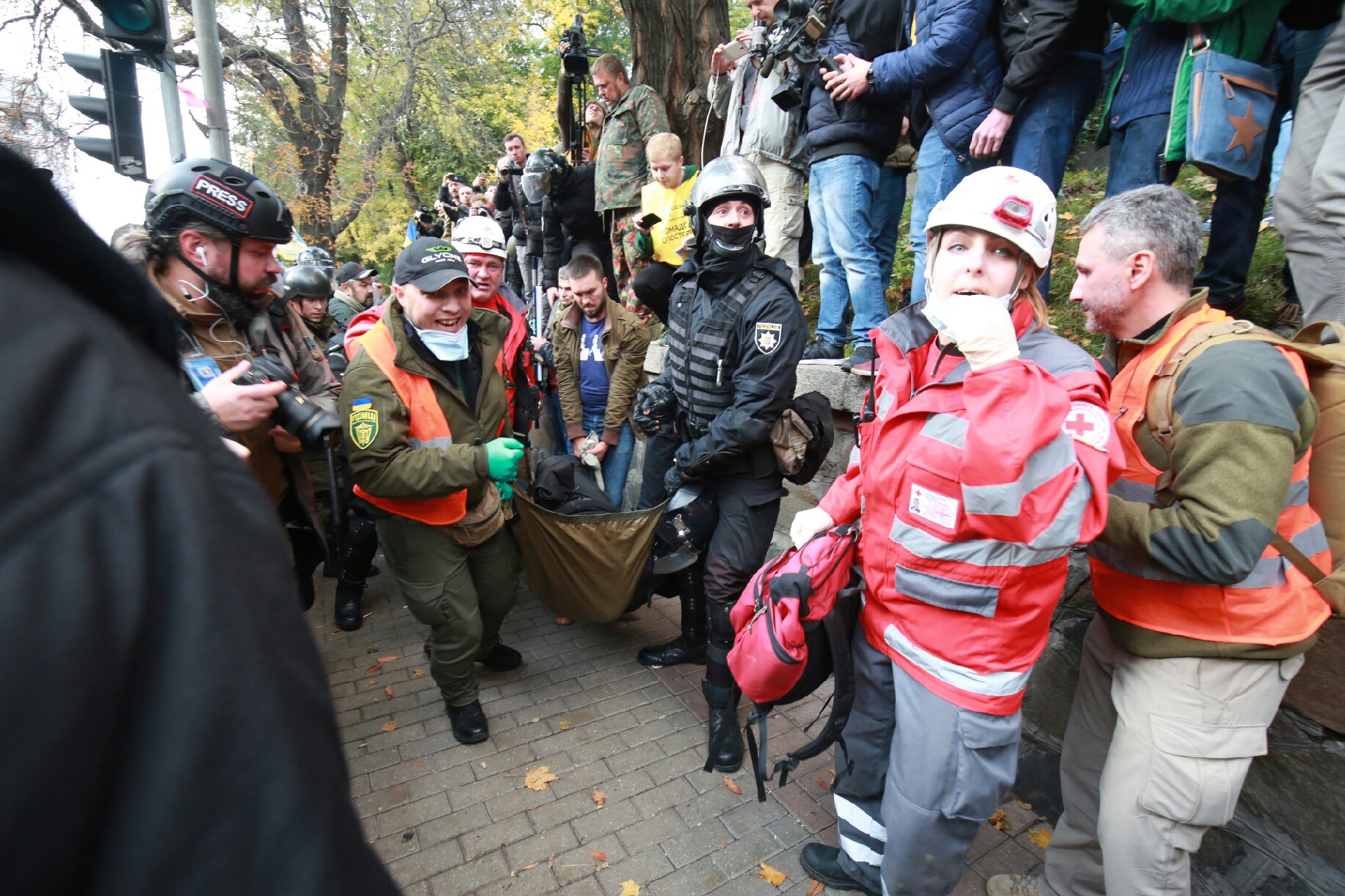Ближе к вечеру возле Верховной Радой произошли первые столкновения. Демонстранты с палатками, сломав рамки металлоискателя, пытались прорвать оцепление. Стражи порядка применили слезоточивый газ. Во время столкновений пострадали три человека: два активиста и один полицейский. Однако палатки в сопровождении депутатов парламента все же удалось занести к местам проведения протестов. 12 палаток уже появились на проезжей части улицы Грушевского рядом с Верховной Радой, еще несколько больших брезентовых палаток установлены в Мариинском парке напротив площади Конституции.