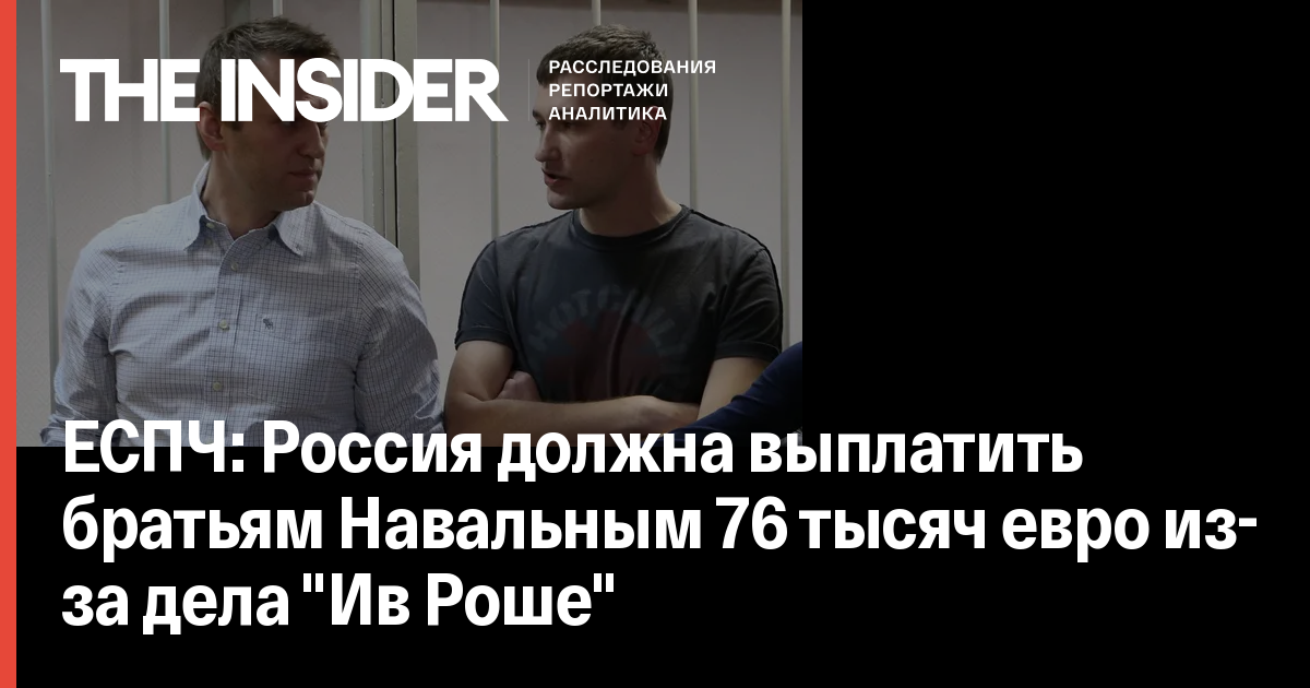 Согласно решению ЕСПЧ, Россия должна выплатить братьям Навальным 76 тысяч евро. При этом ЕСПЧ отказался считать дело «Ив Роше» политическим.