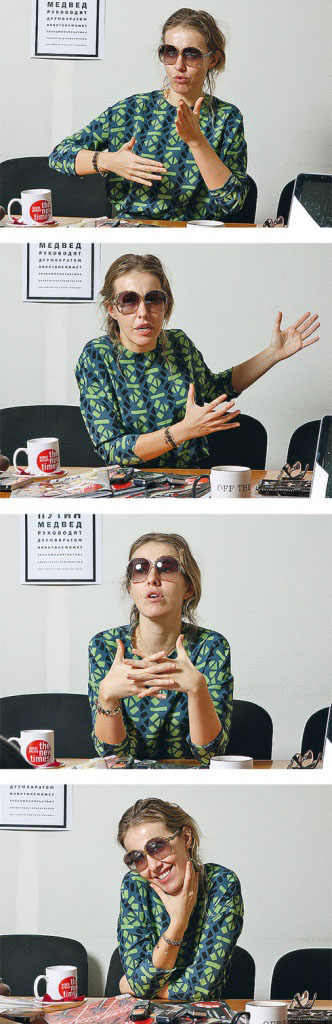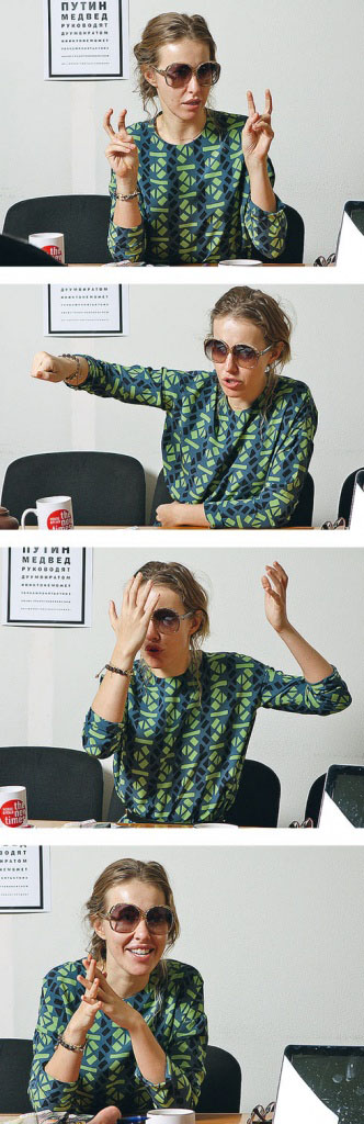 Политика мне всегда была интересна, только в существующей системе я не вижу своего места. Сидеть, нажимать на кнопки в Думе или призывать голосовать за «Единую Россию» я не хочу, это неправильно и унизительно. А в ситуации, которая начала меняться, я пока не чувствую в себе ни сил, ни опыта куда-то идти. Я вот высказала свою гражданскую позицию и считаю своим долгом сейчас об этом говорить и общаться с той аудиторией, которая, так уж сложилось, у меня есть, она достаточно большая. Если из этих людей хоть кто-то пойдет, услышит то, о чем я говорю в своем микроблоге (в Twitter на микроблог Ксении Собчак подписаны 313 тыс. человек. - NT), в ЖЖ, в статьях, которые я пишу, то значит, я сделала какое-то маленькое правильное дело.