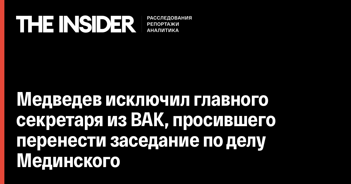 Медведев исключил главного секретаря из ВАК, просившего перенести заседание по делу Мединского