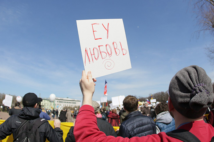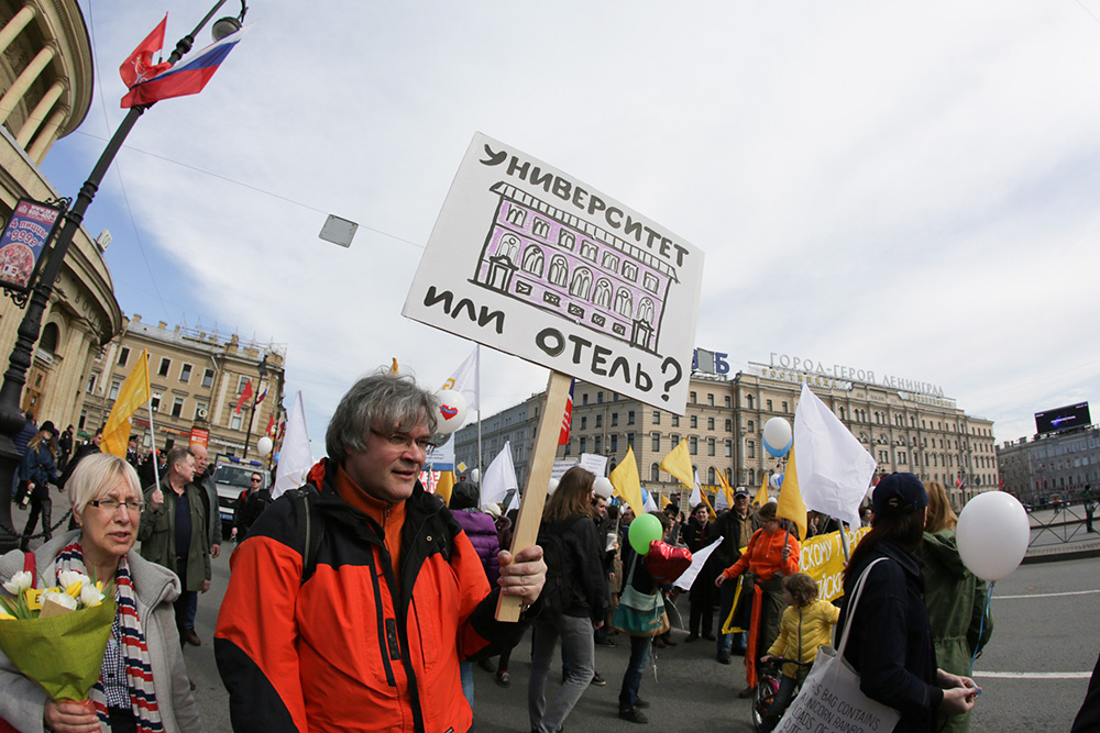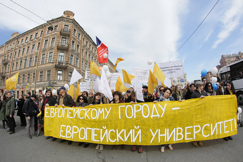 Студенты ЕУ и активисты на Марше в защиту Петербурга 01.05.2017 / Фото: паблик ЕУ во «ВКонтакте»