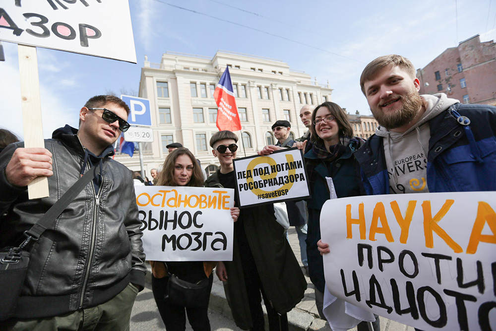 До осени мы не собирались делать никаких акций или привлекать к себе внимание СМИ, потому что от Рособрнадзора было обещание не затягивать процесс получения лицензии. Руководство университета, преподаватели, студенты — в общем, все — довольно наивно верили, как сейчас оказалось, обыкновенному вранью и просто продолжали заниматься своими делами.