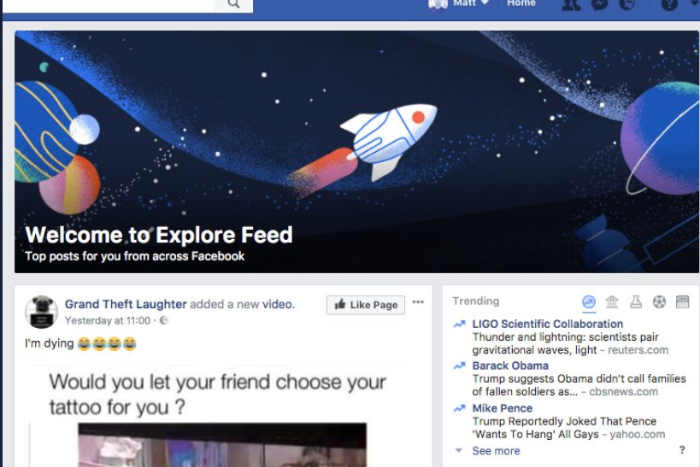 Facebook's Explore Feed is now on desktop, huh? pic.twitter.com/mgXs6tpapH