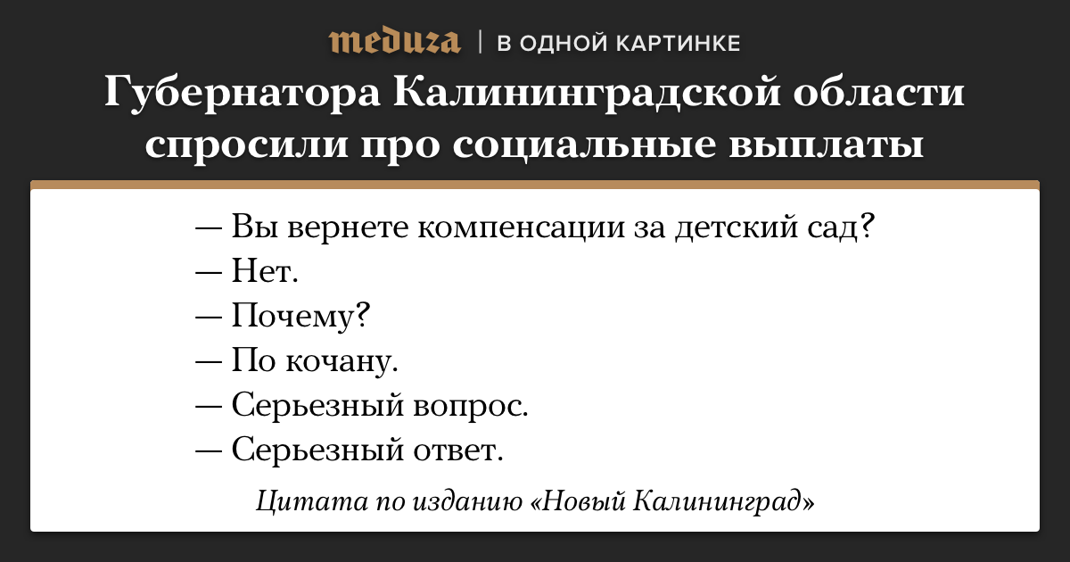 «Почему? По кочану». Калининградский губернатор общается с журналистами. Цитата