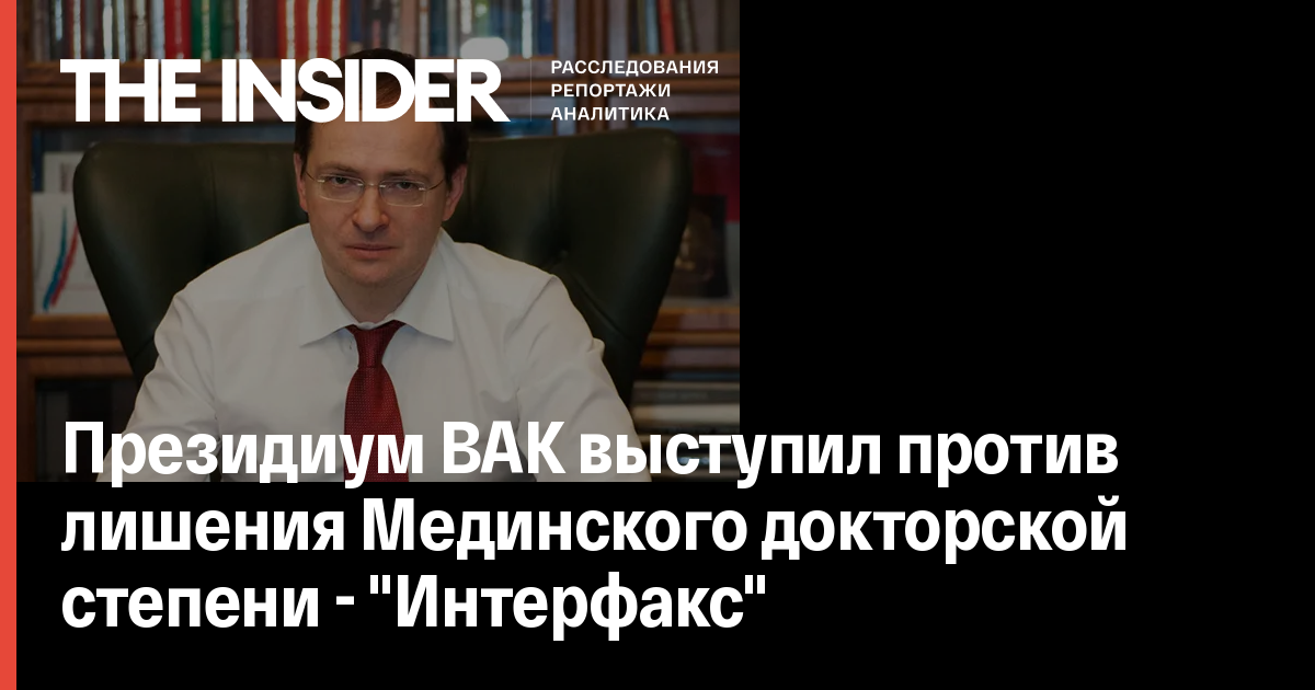 Президиум ВАК выступил против лишения Мединского докторской степени - "Интерфакс"