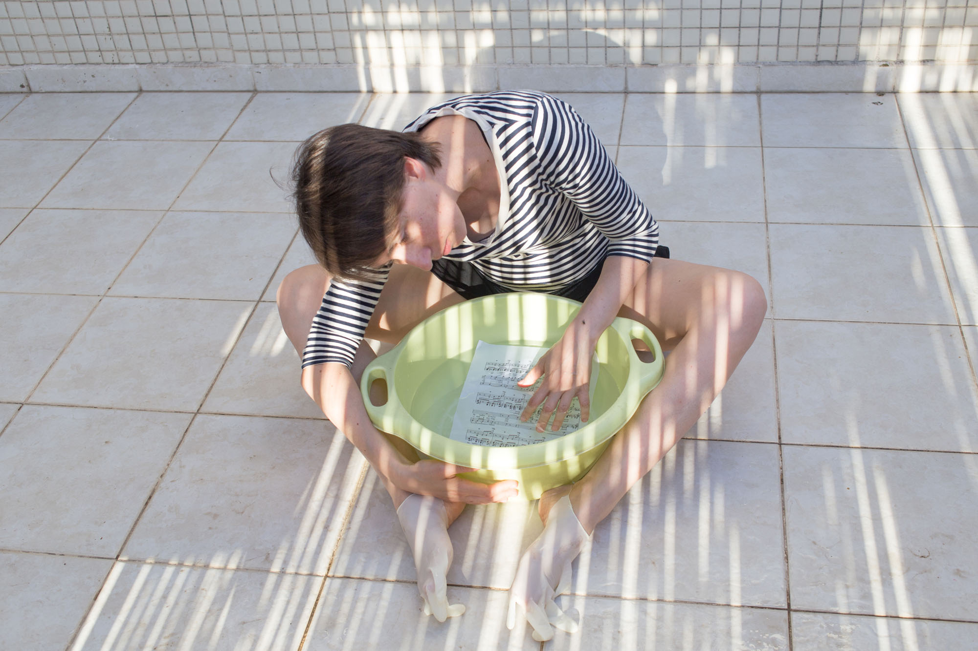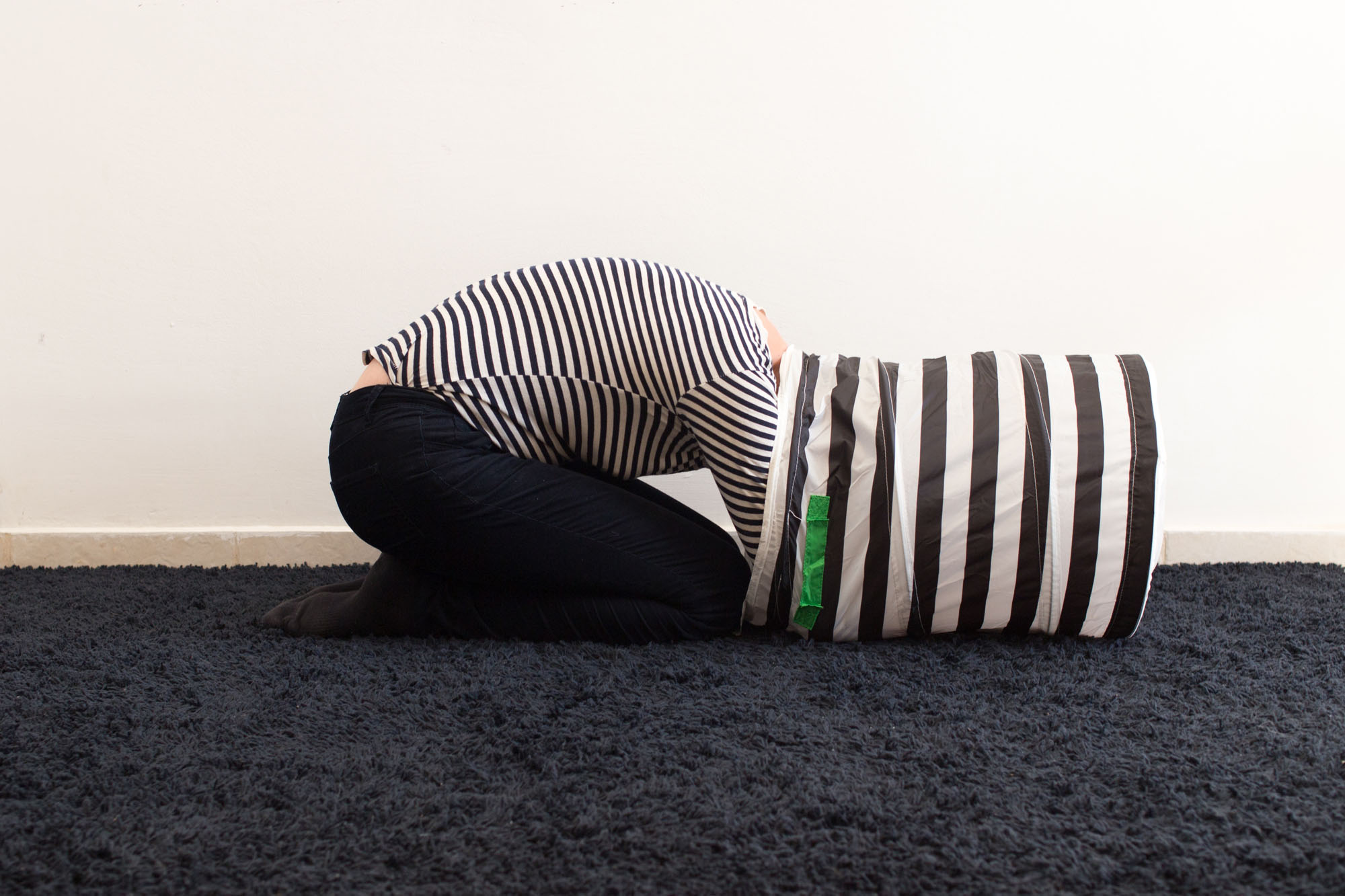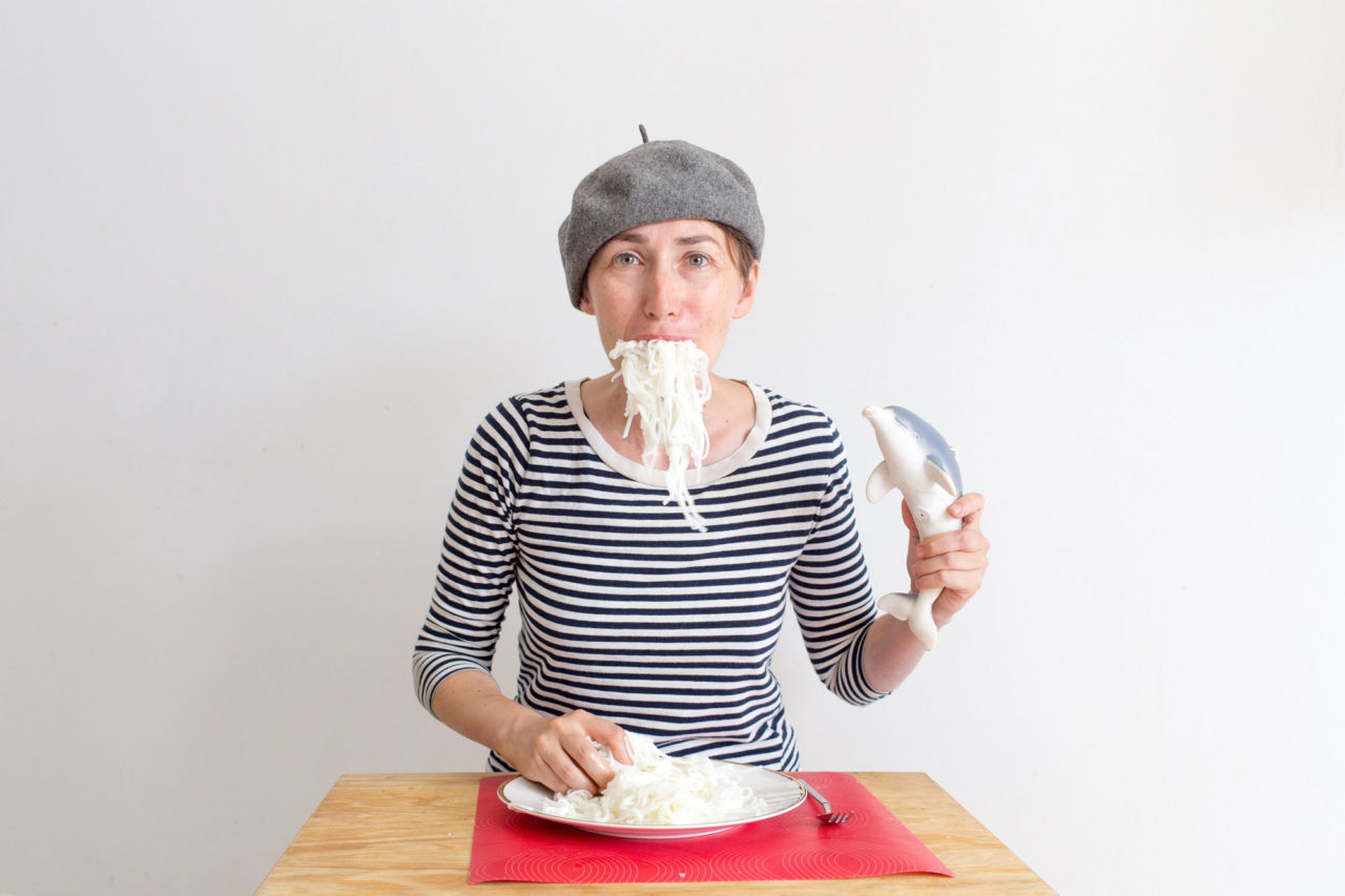 Однажды я попробовала влезть в ее кожу — сама делала то, что ей запрещаю. Трогала горячее и колючее, топила в воде ноты, ела руками. Муж снимал, как я погружаюсь в этот странный для меня опыт. Дочь с изумлением наблюдала, а затем с азартом включилась в игру — надевала мне на голову коробку, на ноги — перчатки, засовывала в рот камни. У нее, тотально одинокого ребенка, вдруг появился друг, который говорит на ее языке.