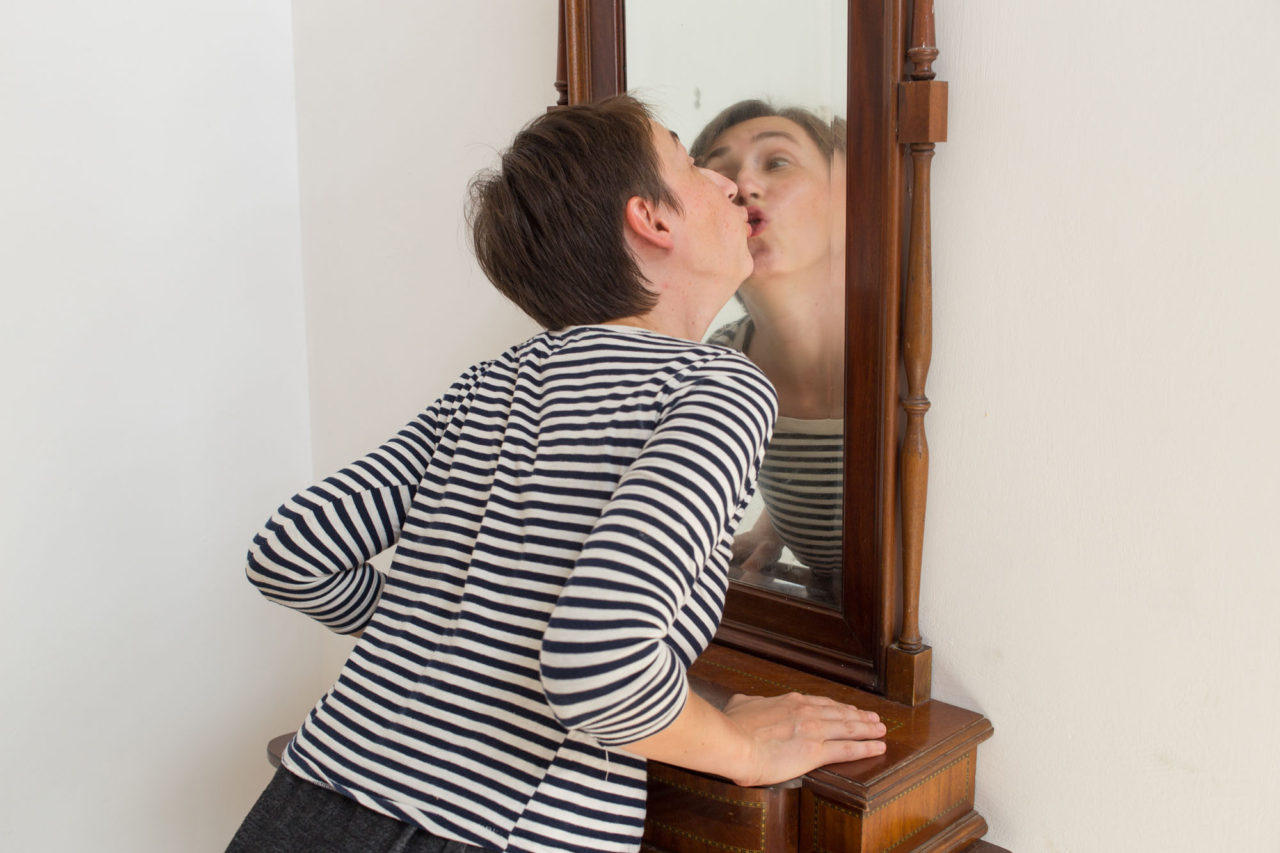 Дочка полюбила целоваться. Она целует не только свое отражение в зеркале, но и планшет с фотографией дельфина, а еще тянется с поцелуями ко всем знакомым и малознакомым людям