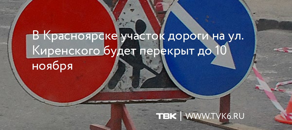 В Красноярске участок дороги на ул. Киренского будет перекрыт до 10 ноября