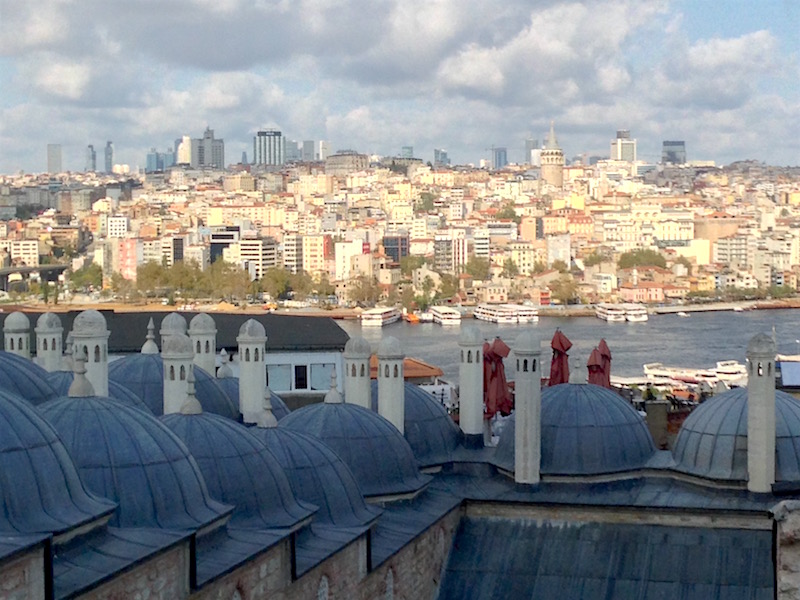 В один из приятных стамбульских дней мы решили погулять по району, где стоит мечеть Сулеймание. Мечеть была построена любимым зодчим Сулеймана Кануни (Законодателя) - Синаном. Синан 19 лет служил в янычарах, но в одном из походов решил проблему переправы через реку, построив мост. Сулейман заметил талантливого инженера, и в результате Синан построил более 400 сооружений. Говорят, когда Синан завершил строительство Сулеймание, он сказал, что мечеть будет стоять вечно. Пятьсот лет землетрясений подтвердили правоту его слов - и мечеть прекрасна, и место, где она построена выбрано очень правильно - сверху открывается чудесный вид на бухту Золотой Рог и район Галатской башни.