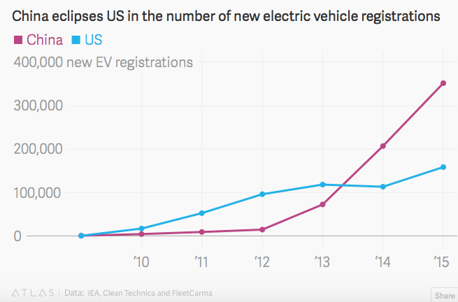 - Китай опередил США по продажам электромобилей еще в 2015 году, правительство субсидирует их производство. В 2016 году в Китае было продано 350 тысяч электромобилей, в первом полугодии 2017-го — 180 тысяч. К 2025 году продажи должны вырасти до 7 миллионов в год.