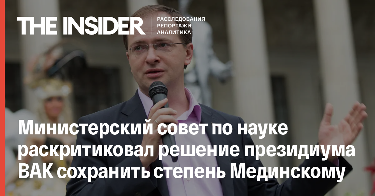 Министерский совет по науке раскритиковал решение президиума ВАК сохранить степень Мединскому