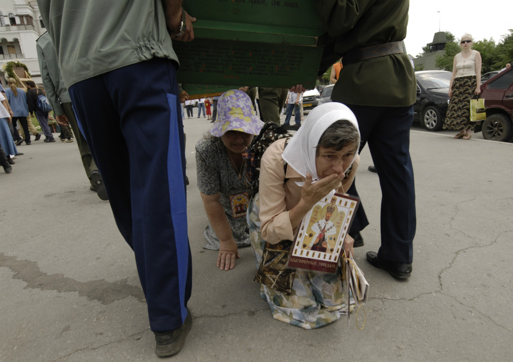 Поклонение иконе царя Николая II в ЕкатеринбургеФото: Vasily Volnenko/Reuters/PixStream Во время крестных ходов люди подбегали к образу, чтобы взять его на руки и пронести несколько метров. Рядами падали на колени и ждали, когда над их головами «пронесется» икона. «А когда мы шли с ней по Красной площади, то иностранцы не понимали, откуда такое благоухание и ликование, такая радость. Царь шел по Москве».