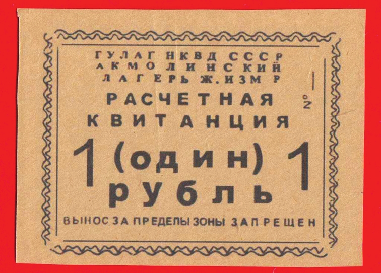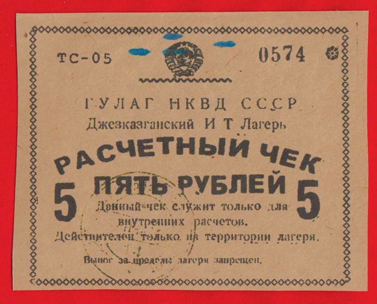 В некоторых источниках упоминаются более ранние расчетные квитанции номиналом 5 и 10 руб. с изображением слона, но в каталогах их нет. Зато на аукционах встречаются фотографии расчетных знаков других лагерей (рис. 16–19); некоторые, возможно, являются фантазиями (рис. 20: на боне дата «1935 год»; СЛОН был расформирован в 1933 году, превратившись в отделение БелБалтЛага, а в 1937–1939 годах на Соловках работала Специальная тюрьма особого назначения (СТОН)).