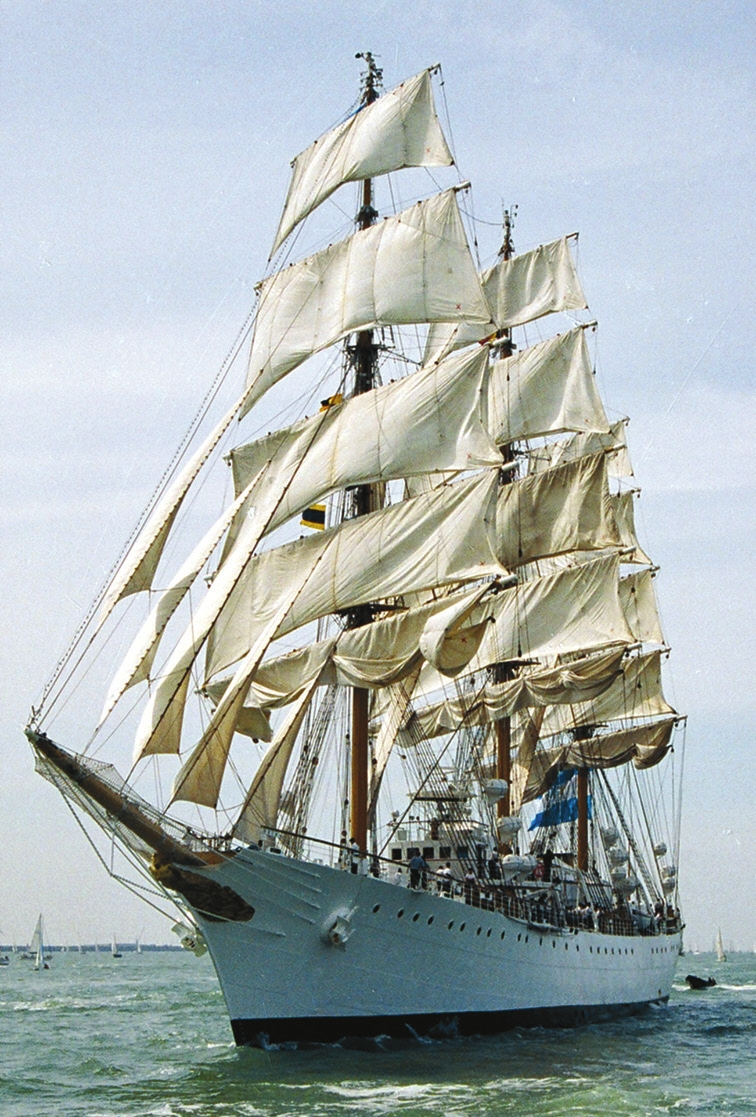 А парусник на лицевой стороне банкноты (рис. 9), за памятником Петру I работы Марка Антокольского и на фоне Морского вокзала Архангельска, — это фрегат ВМС Аргентины «Либертад» (рис. 10). Бывший главный художник Гознака Игорь Крылков объяснил это так: «На фотографии, с которой я срисовывал порт, стоял современный пароход. Но в последний момент в Центробанке сказали, что с общей идеей банкноты пароход не стыкуется. Я срочно нашел фотографию с тем парусником и перерисовал. Откуда мне было знать, что в Архангельск он не заходил?» [5].