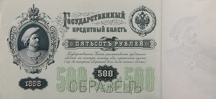 Были и несправедливые придирки. Так, писали, что памятник Петру I установлен в Таганроге, а не в Архангельске. На самом деле в Таганроге стоит полноразмерный вариант, а в Архангельске — уменьшенная копия, отлитая уже после смерти скульптора, и, судя по форме постамента (квадратный, а не круглый в плане), на банкноте изображена именно она. Кстати, фрагмент того же памятника был изображен и на пятисотрублевой банкноте 1898 года (рис. 11).