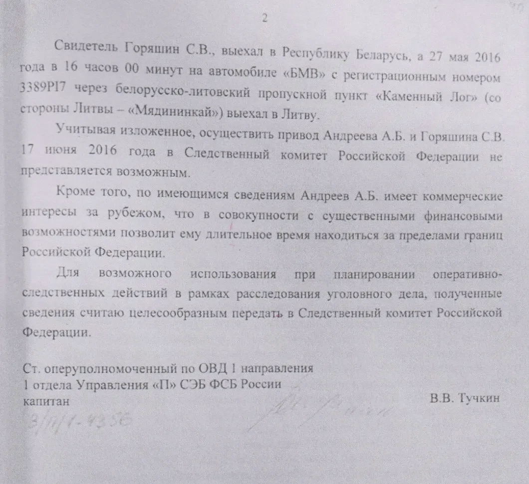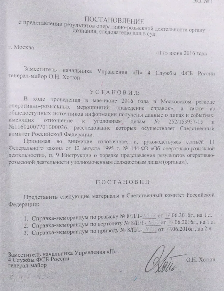 Материалы уголовного дела, принятого к производству старшим следователем ГСУ СКР Романом Нестеровым, изобиловали рапортами и справками-меморандумами, подписанными начальником Управления «П» СЭБ ФСБ генералом Анатолием Райкевичем и его заместителем Олегом Хотюном, и свидетельствовали о проверке на причастность к преступлению около двух десятков человек, включая Александра Тулякова и Акима Носкова.