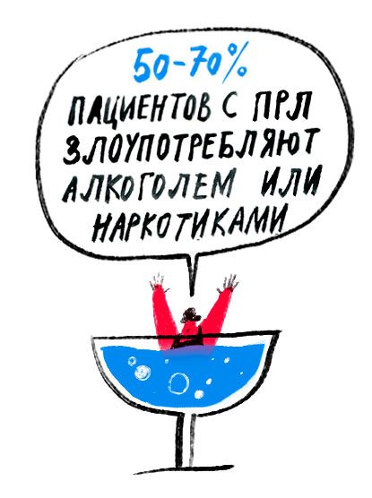 Для подавления боли идут в ход и алкоголь, и психотропные вещества, потому пограничное расстройство даёт склонность к зависимостям и созависимостям.