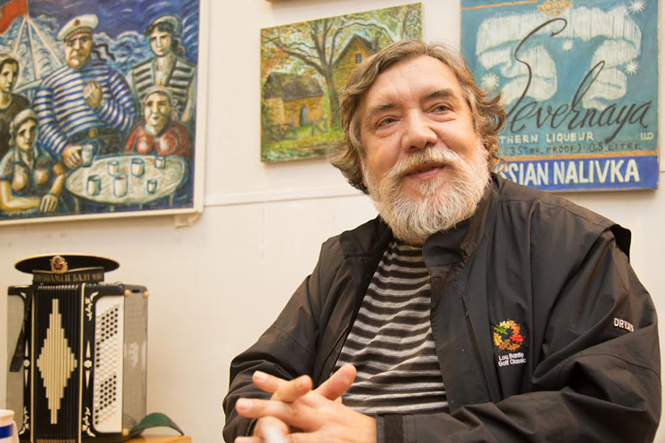 29 октября Дмитрию Шагину — художнику и одному из основателей движения митьков — исполнилось 60 лет. Накануне он пригласил журналистов COLTA.RU в музей «Митьки-арт» на улице Марата, на третьем с половиной этаже старинного доходного дома. Пока ждем у домофона, в подъезд заходит строгая пожилая женщина с внуком и подозрительно оглядывается: «Вы на день рождения? Не шумите потом, не топайте!» Фотограф растерянно крутит в руках красиво упакованный торт и невольно оправдывается: «Нет, не волнуйтесь, мы на интервью!» Перед закрытыми дверями музея сидим больше часа: у Шагина телевизионная группа из Москвы, снимают фильм про алкоголизм. Наконец дверь открывается — большой благодушный человек приглашает внутрь и наливает чай. «Какой вкусный, нежный, м-м-м-м! Ничего себе!» — басит он, накладывая торт себе и гостям.