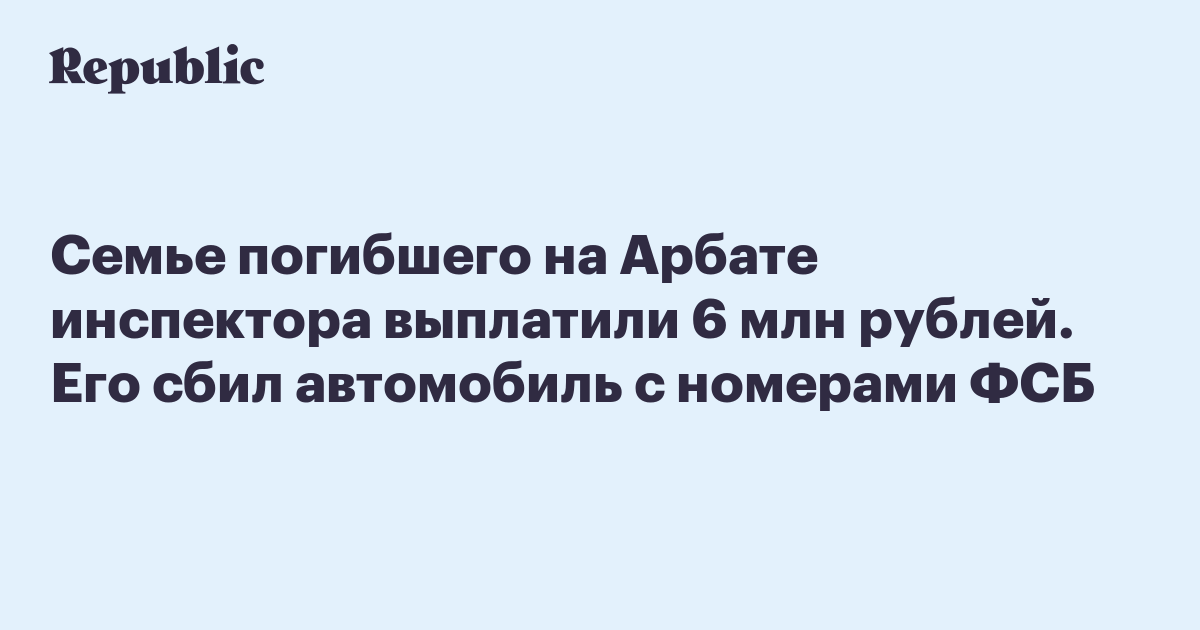 Семье погибшего на Арбате инспектора выплатили 6 млн рублей. Его сбил автомобиль с номерами ФСБ