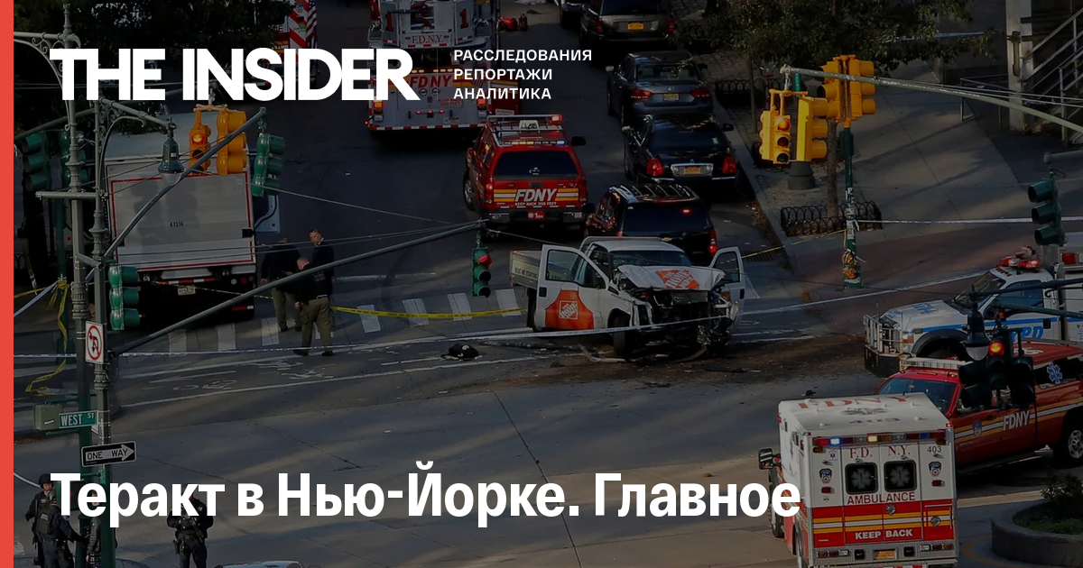 В Нью-Йорке мужчина на пикапе сбил людей на велодорожке в Манхэттене, неподалеку от Всемирного торгового центра. Восемь человек погибли, говорится в сообщении полиции. Еще 11 госпитализированы. The Insider собрал всю информацию, известную наутро после теракта.