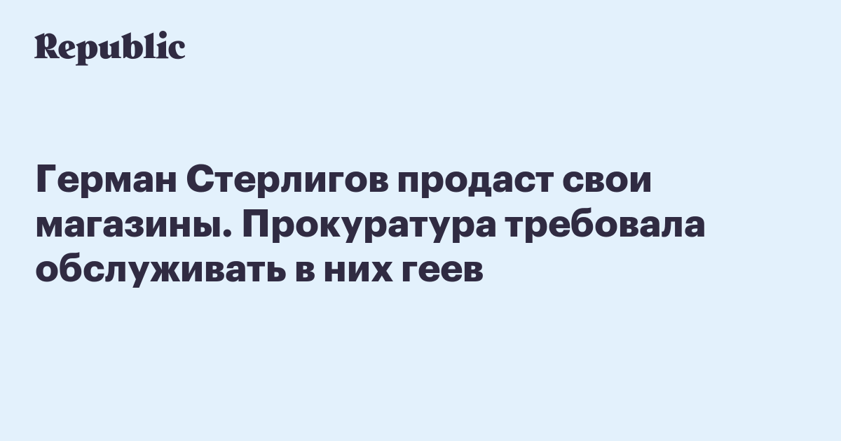 Герман Стерлигов продаст свои магазины. Прокуратура требовала обслуживать в них геев