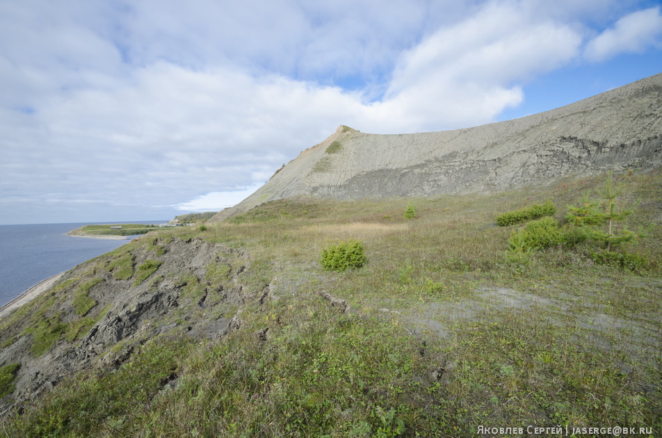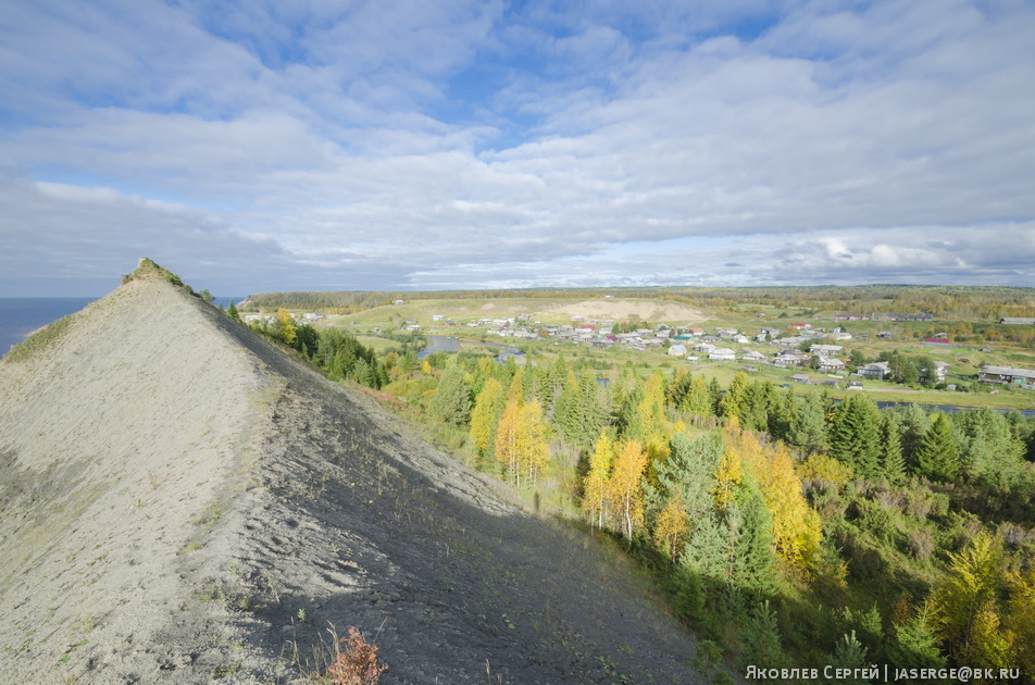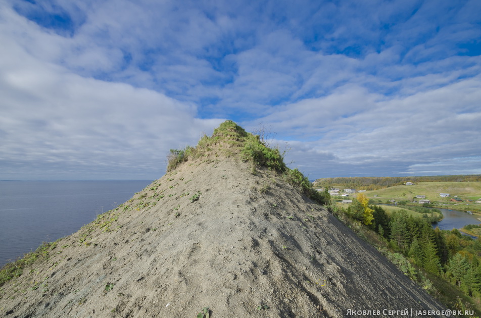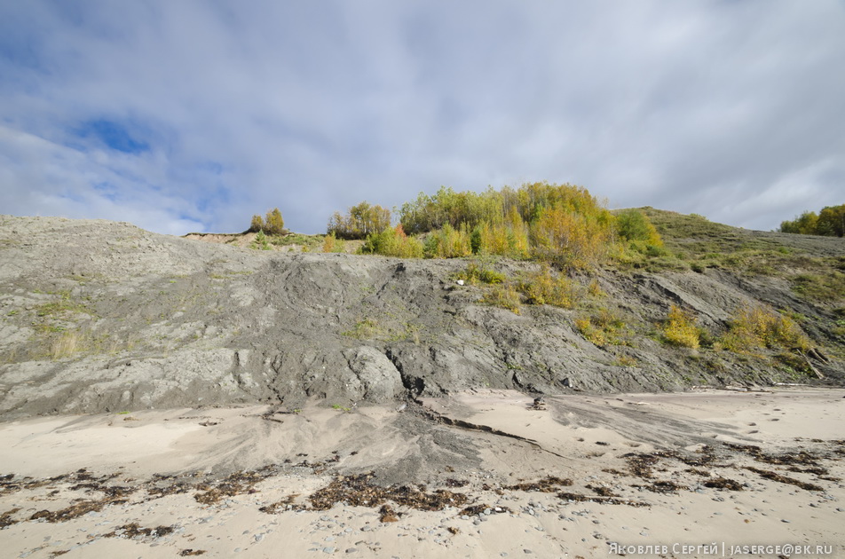 Гора постепенно осыпается, но происходит это не так быстро, возможно из-за того, что даже на верху грунт влажный и сверху образуется вроде цементной корки. Если ее пробить, то можно даже увязнуть.