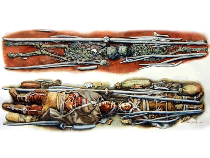 Реконструкция захоронения детей со стоянки Сунгирь Libor Balák Палеогенетики сумели прочитать геномы четверых человек из палеолитической стоянки Сунгирь во Владимирской области, включая останки из знаменитого парного захоронения детей. И результат оказался неожиданным. С момента открытия этого захоронения одного из детей считали, по внешним признакам скелета, девочкой. На этом порою даже строили интерпретации погребального инвентаря и пытались реконструировать религиозные воззрения людей палеолита. Но останки, известные как «Сунгирь-3», оказались принадлежавшими мальчику – в них имеется Y-хромосома. Оба мальчика из парного погребения приходятся друг другу, скорее всего, двоюродными или троюродными братьями.