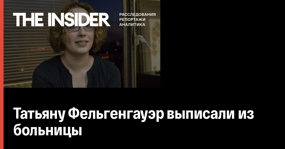 Журналистку радиостанции «Эхо Москвы» Татьяну Фельгенгауэр выписали из больницы. Об этом сообщает АГН «Москва» со ссылкой на справочную службы НИИ им. Склифосовского.