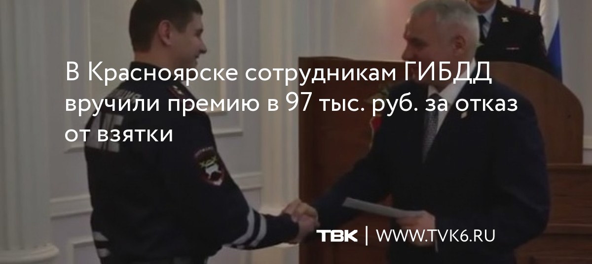 В Красноярске сотрудникам ГИБДД вручили премию в 97 тыс. руб. за отказ от взятки