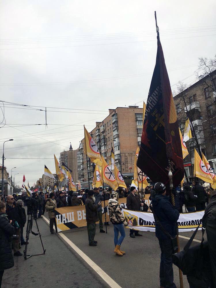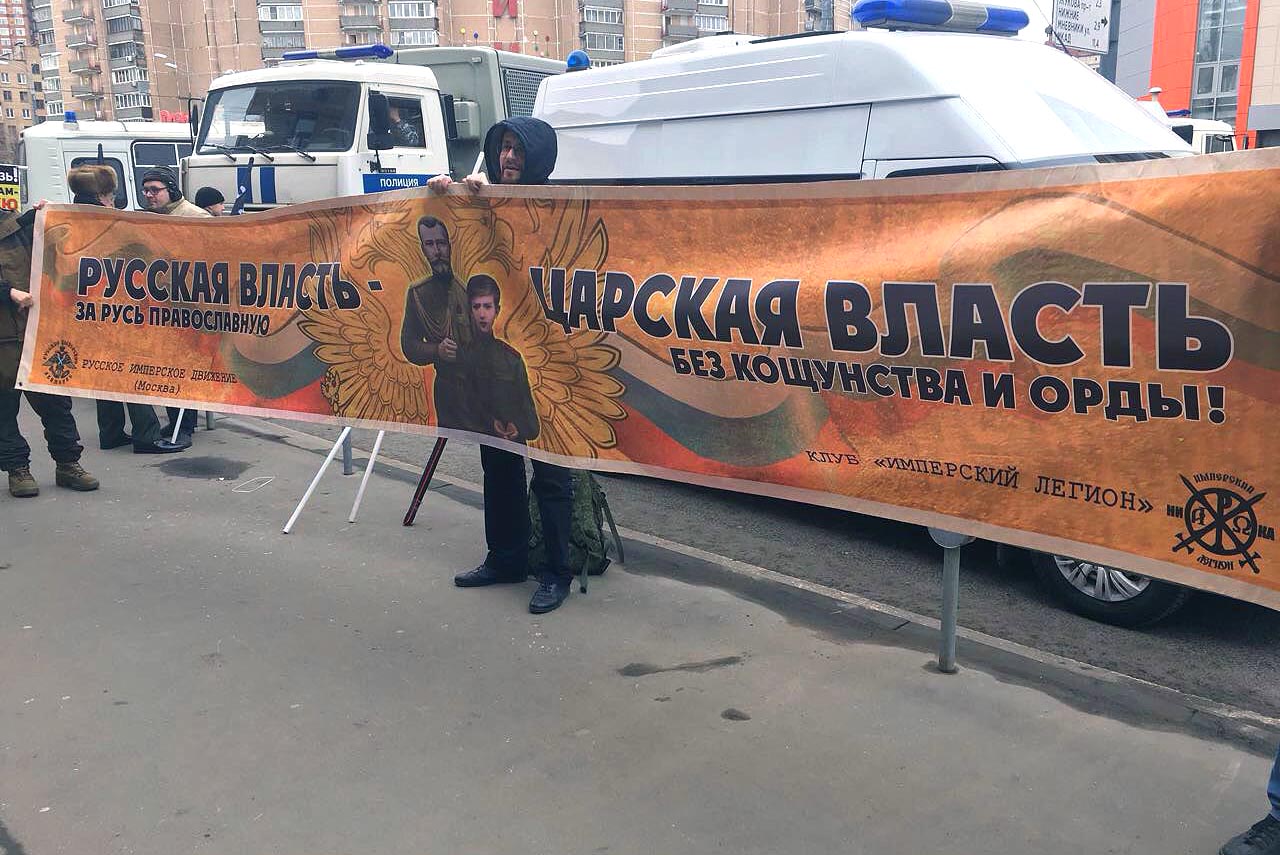 Собравшиеся шли под лозунгами «России — русскую власть», «Свободу русским политзаключенным». Среди атрибутики доминировали имперские флаги и портреты Николая Второго
