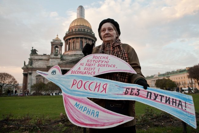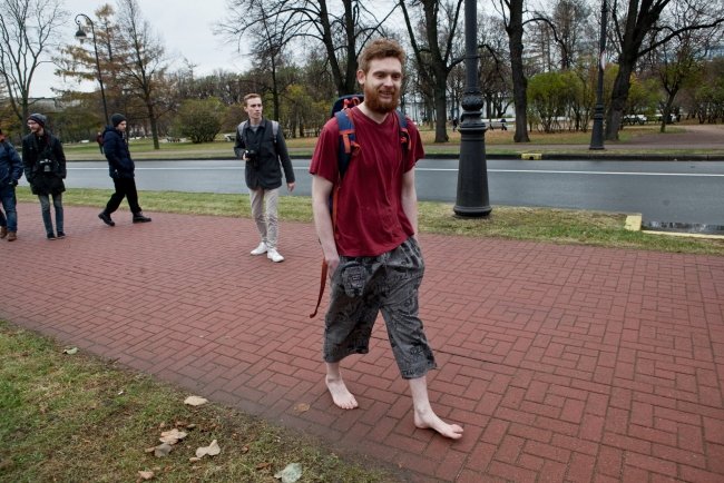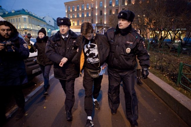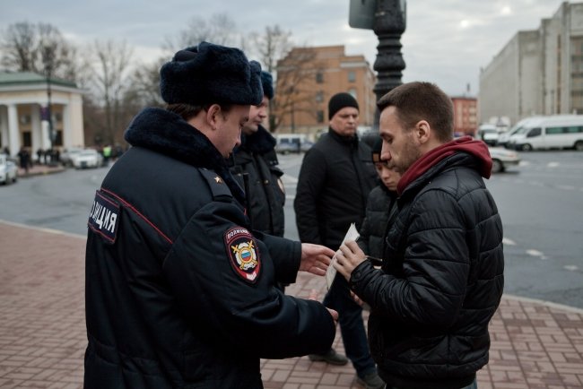 В 16.00 в сквере возле Исаакия людей собралось чуть больше: около 150 человек. Встать в одиночный пикет решилась только художница Елена Осипова – постоянная участница городских акций протеста. Правоохранители не стали трогать пожилую женщину, но быстро нейтрализовали молодого человека в камуфляже, который попытался составить ей компанию. Затем в автозак отправился юноша, в рюкзаке у которого нашли перцовый баллончик.