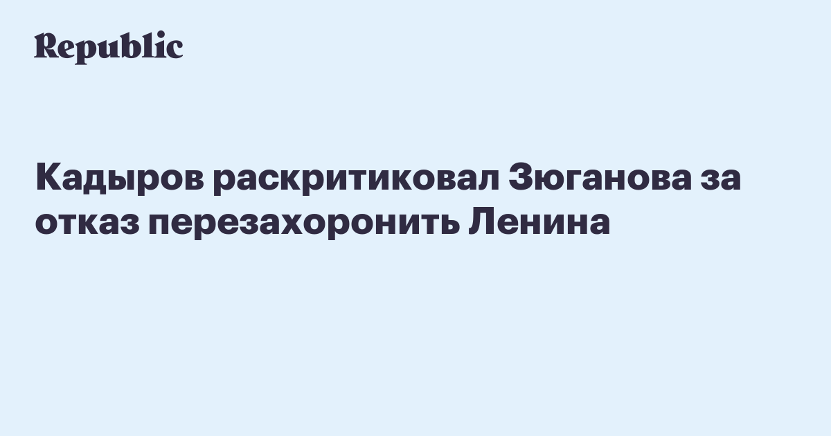 Глава Чечни Рамзан Кадыров и лидер КПРФ Геннадий Зюганов вступили в заочную полемику по вопросу перезахоронения Владимира Ленина. Кадыров раскритиковал заявление Зюганова, который назвал «болтовней» идею вынести тело из Мавзолея.
