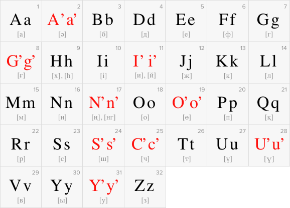 Сильно досталось вариантам буквы У, которых в казахском целых три — они обозначают немного разные звуки. В кириллице они достаточно сильно отличались друг от друга, а в нынешнем варианте латиницы все три буквы (да еще и вместе с Ы) будут основаны на двух латинских графемах: Y и U.
