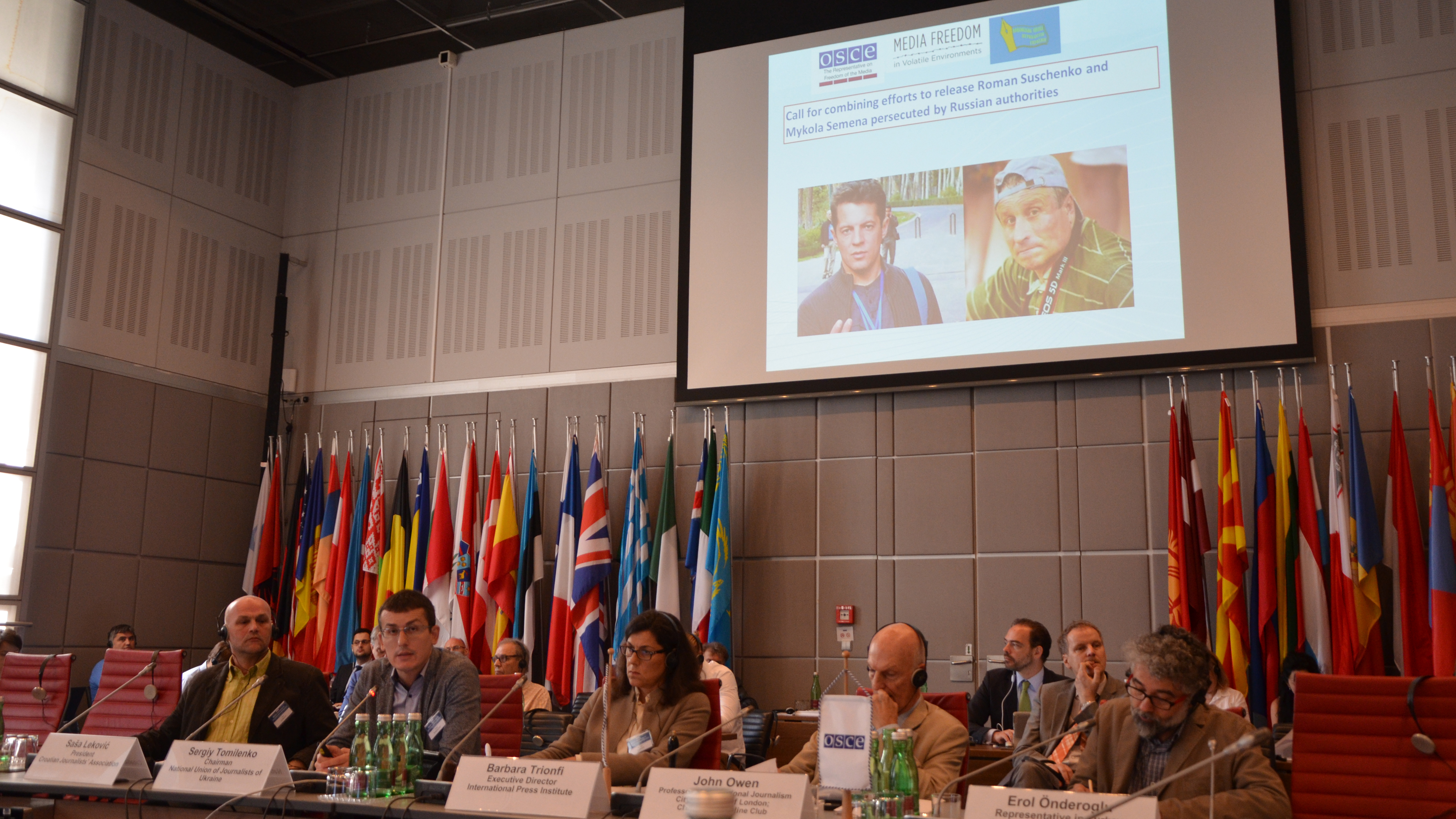 В июне этого года на конференции ОБСЕ в Вене, посвященной свободе СМИ в условиях нестабильности, среди российской делегации оказался уже упомянутый выше глава «Союза журналистов Севастополя» Сергей Горбачев.
