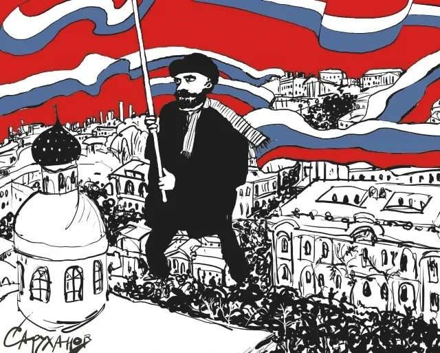 У входа в Английский клуб, Музей современной истории России тож, толклись реконструкторы. Все молодые, но словно выпали из стиха, в их учебники уже не входившего: бежит матрос, бежит солдат… Кожанки, тельняшки, шинели лепились к гордости народной — пушке, из которой в 1917-м шмаляли по соборам Кремля. (Она ведь у нас до сих пор стоит на Тверской, та самая пушечка.) Над Москвой полыхал кумач: одна косынка, два банта на груди.