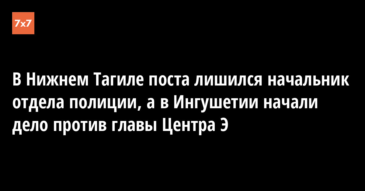 В Нижнем Тагиле поста лишился начальник отдела полиции, а в Ингушетии начали дело против главы Центра Э