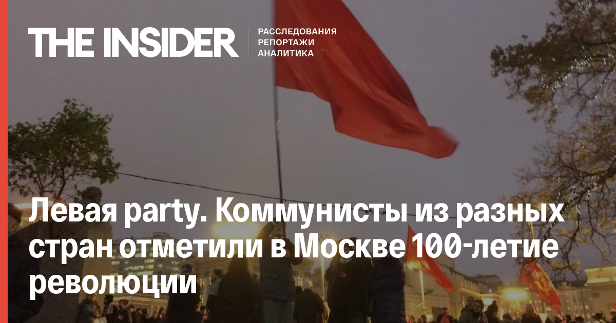Когда человек выходит из московской подземки на станциях «Театральная» или «Площадь Революции», он, как правило, попадает на какой-нибудь праздник - очередную сезонную ярмарку, костюмированный фестиваль или спортивное мероприятие. 7 ноября 2017 года не стало исключением для корреспондента The Insider. В этот день, однако, не приходилось сомневаться в том, что именно согласовали столичные власти на этот раз. Напротив главного в стране универмага капиталистических брендов развевались красные знамена, а из громкоговорителей неслись слова песни, предрекающей скорый конец буржуям всех мастей.