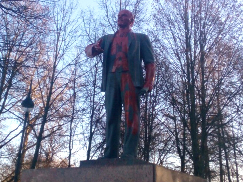 В 100-летнюю годовщину Октябрьской революции памятник Ленину под Петербургом облили красной краской