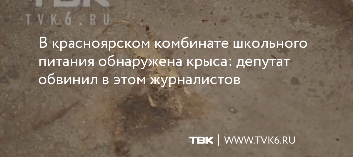 Отметим, 7 ноября группа Новостей ТВК во время съемок программы «Проверка» обнаружила в мясном цеху комбината школьного питания полуразложившийся труп грызуна. Также среди нарушений комбината корреспондентом были обнаружены окурки и зафиксировано отсутствие спецодежды на сотрудниках.