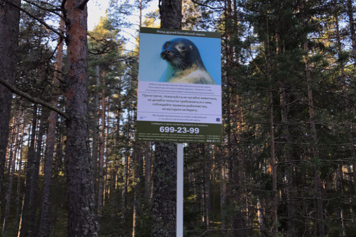 Зоозащитники установили информационные щиты о балтийской нерпе у Финского залива, где собираются делать домики для животных