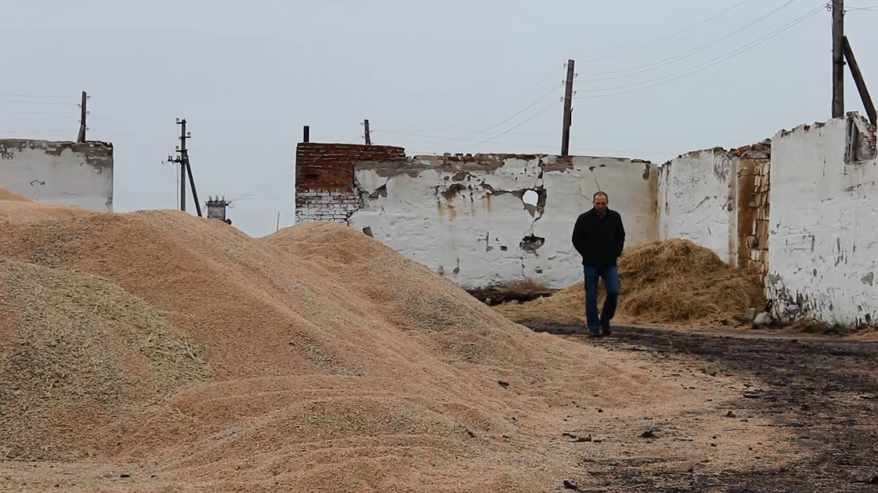 0:00 0:02:19– Накрываем, как можем, – глава крестьянско-фермерского хозяйства Дмитрий Флях показывает на горы зерна, прикрытого целлофаном в давно оставшемся без крыши полуразвалившемся амбаре. – Где-то пленки собрали по всей деревне, где-то соломой накрыли, где-то вообще открыто просто лежит. Девать его некуда.